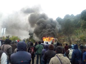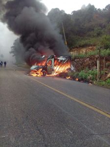 Continúan las acciones en aquel municipio indígena de habla Tzotzil. Fue a eso de las 14:00 de este día. Cuando un grupo autodenominado Autodefensas de la Comisión Permanente de Paz y Justicia encabezado por Óscar Gomez López, Juan Encinos Gomez, Juan Gabriel Mendez López y Nicolás Ruiz Córdova. Presuntamente dirigen una accion y retienen 4 vehículos más de empresas Bimbo y Marinela. Los llevaron en la carretera federal para ser quemados.