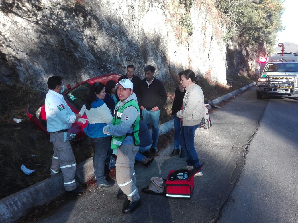 Fue a las  07:40 hrs de este jueves , cuando un reporte de accidente con varios lesionados, se dió en el tramo Carretera San Cristóbal / Teopisca en el tramo Rancho Nuevo como referencia antes de llegar al Aguaje. En el lugar acudio persona del   *CENTRO REGIONAL DE PROTECCIÓN CIVIL Y BOMBEROS*  El personal en el lugar de los hechos localizo un vehículo color rojo marca Corza placas DSZ 90-72 de Chiapas el cual refieren los tripulantes que fueron golpeados lateralmente y eso hizo que perdiera el control y salió de la cinta asfáltica por un volteo, el cual no se encontró en el lugar, se estabilización el vehículo, personal paramédicos atiendieron a las personas lesionadas de nombres: