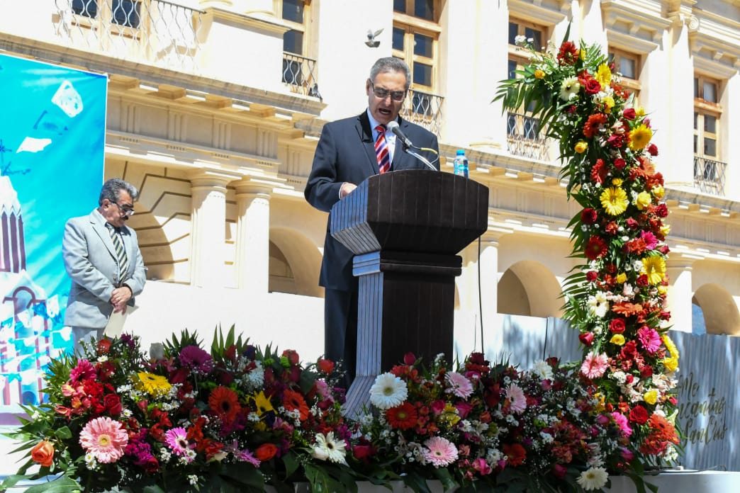 Con la presencia de Autoridades Civiles y Militares, al emitir el mensaje oficial, el Maestro Rolando Villafuerte Aguilar, indicó que desde su comienzo nuestra ciudad fue cosmopolita ya que confluyeron en ella personas de diversa nacionalidad y costumbres diferentes. “Desde aquella lejana época ya se avizoraba su porvenir multiétnico, lo que nos lo confirma la realidad actual en la que vemos transitar por sus calles a personas venidas de todos los confines del mundo”.