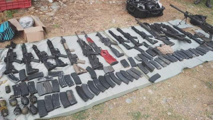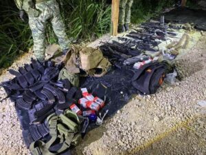 Durante reconocimientos terrestres en el ejido Sinaloa, Mpio. de Fra. Comalapa, Chis., fueron agredidos por personas desconocidas, sin que resultara el personal militar lesionado; lográndose la detención de tres individuos del sexo masculino que responden a los nombres de Miguel Ángel G. G., de 31 años de edad, originario del Estado de México, Aristóteles B. R. de 39 años de edad y Jorge S. S. de 42 años de edad, ambos originarios del Estado de Guerrero a quienes se les aseguró lo siguiente: