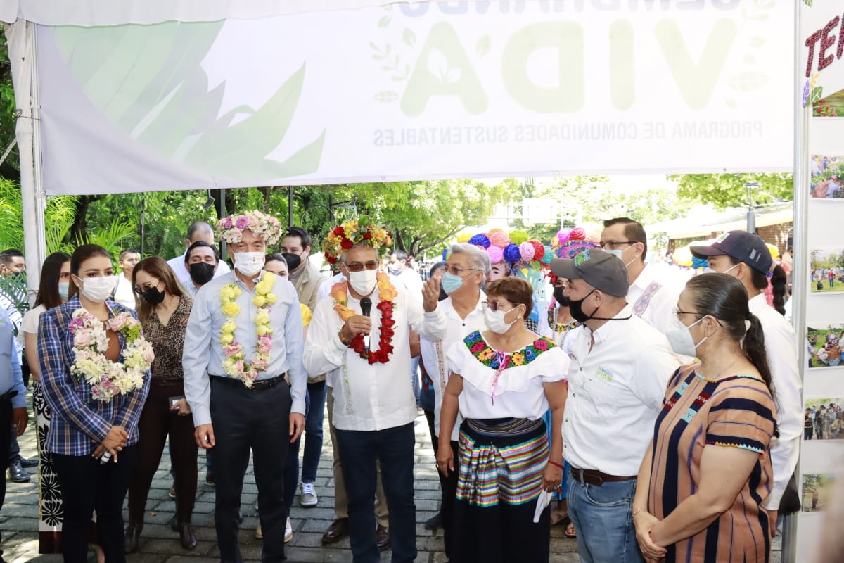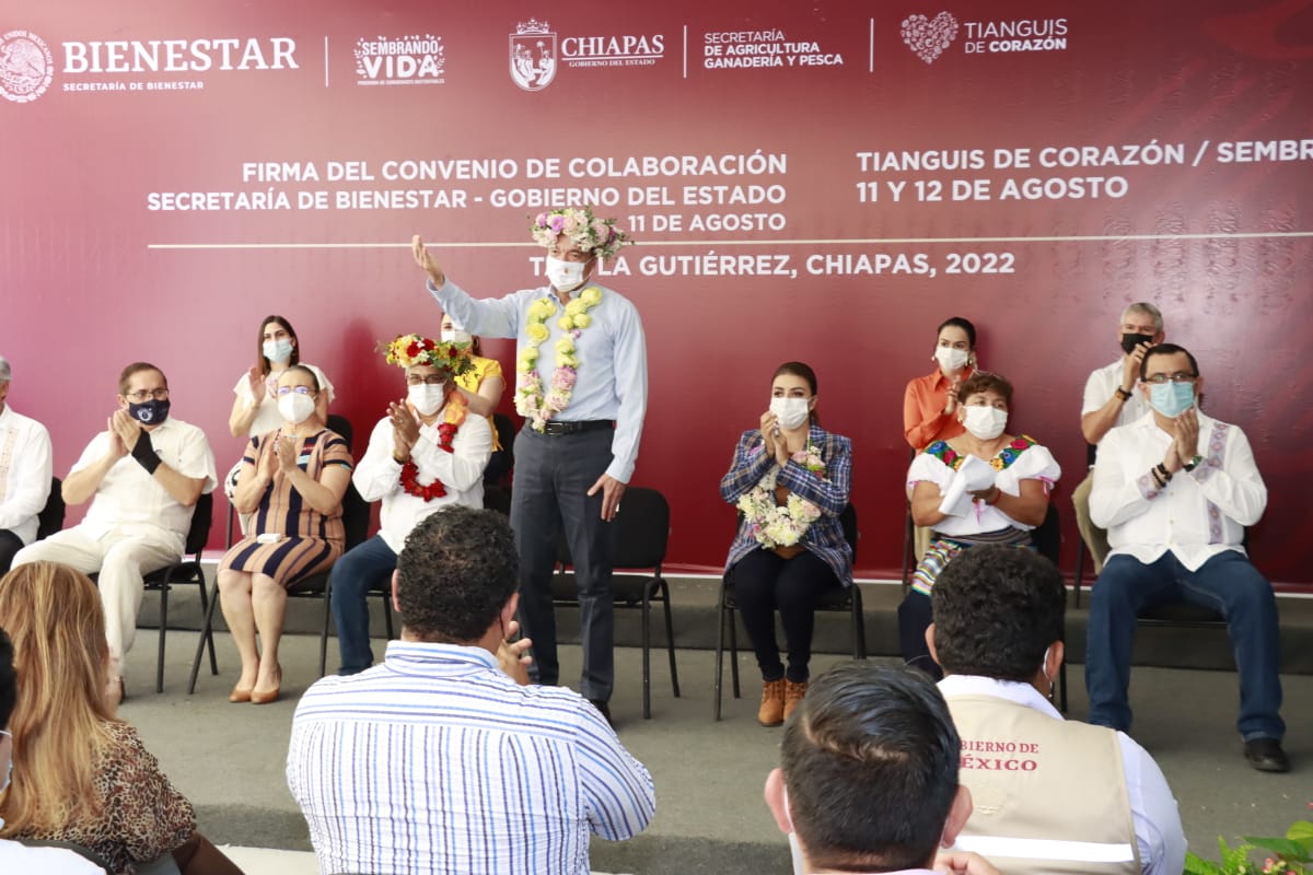 El gobernador Rutilio Escandón Cadenas encabezó la inauguración del Tianguis de Corazón–Sembrando Vida y la firma de Convenio Marco de Colaboración entre la Secretaría de Bienestar federal y el Gobierno del Estado, donde celebró los avances que Chiapas ha logrado mediante el impulso de este modelo agroforestal, el cual ha permitido llegar a sembrar 16 millones de árboles, y cumplir con el reto de dar valor agregado a los productos que se cosechan, a fin de favorecer una mayor competitividad y comercialización.