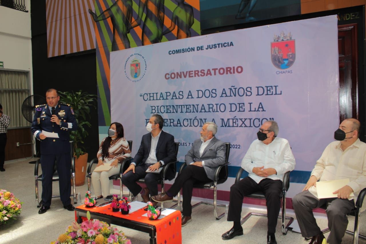 Tuxtla Gutiérrez, Chiapas a 07 de septiembre de 2022.- Con la participación de académicos, historiadores y representantes de diversas universidades, se llevó a cabo el conversatorio: “Chiapas a dos años del Bicentenario de la Federación a México” que organizó el diputado por MORENA Raúl Eduardo Bonifaz Moedano en la Sala Mural del Congreso del Estado.