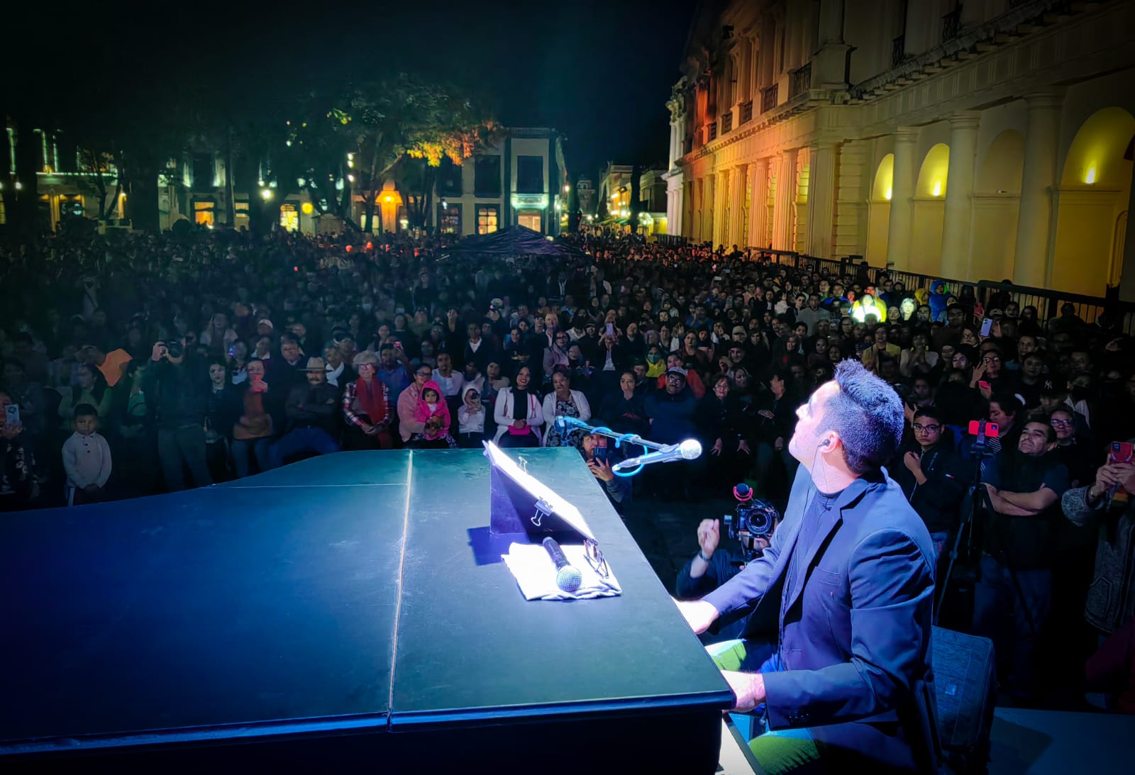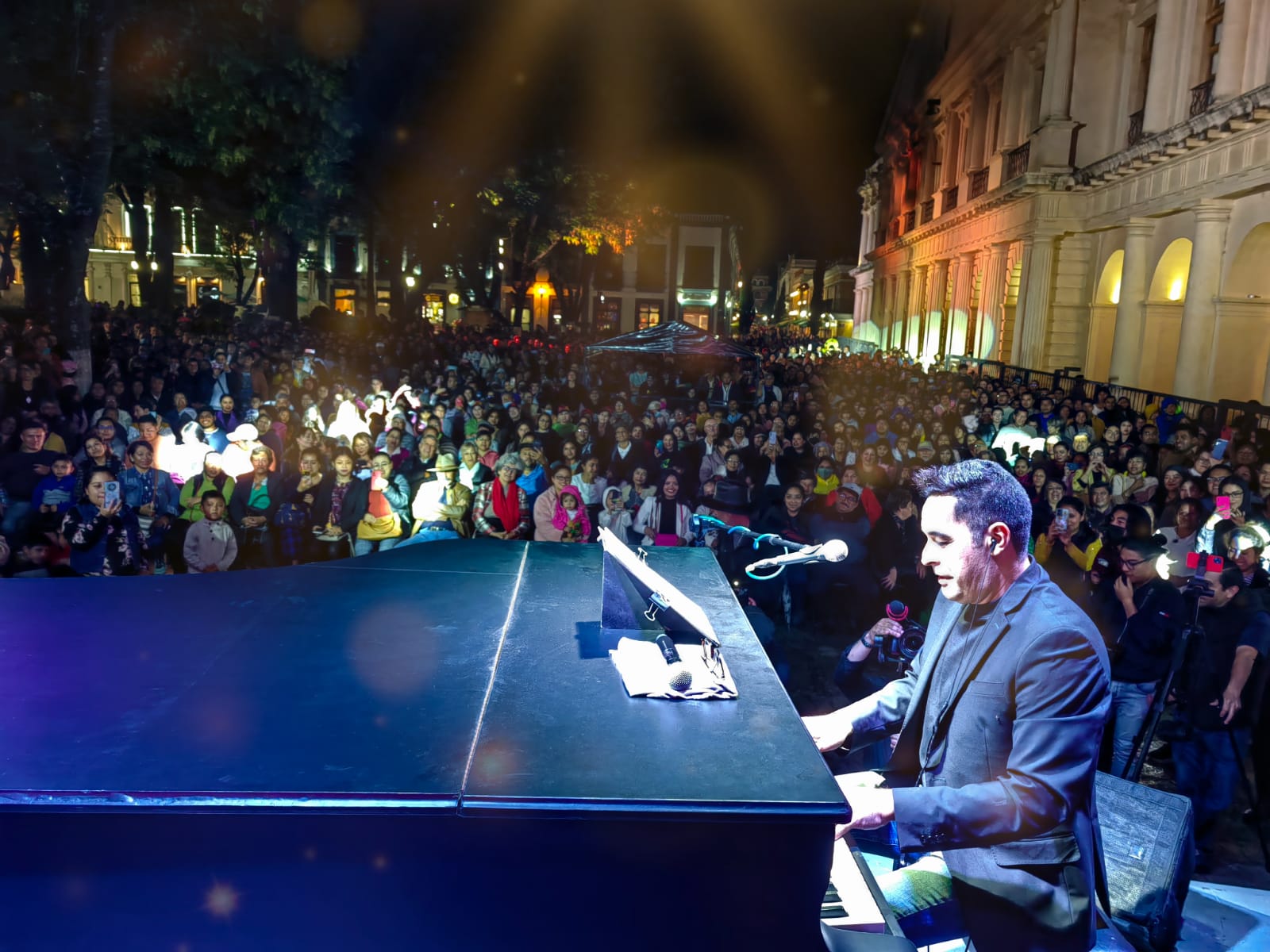 San Cristóbal de Las Casas, Chiapas/07 de junio del 2023.- El Piano de México, Arturo Aquino, con una ejecución perfecta y un carisma sin igual fueron los ingredientes para que el consentido de Chiapas lograra cautivar con su música a todos los asistentes en el marco de la celebración del jueves de Corpus Christi en el parque central de San Cristóbal de Las Casas, y que lo reconocieron con sus aplausos.