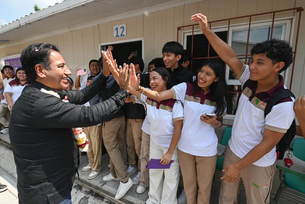 Acompañado de su esposa Sofía Espinoza Abarca, el mandatario entregó becas Rosario Castellanos a beneficiarios del programa de alfabetización Chiapas Puede, y recorrió las Unidades Médicas Móviles de Atención Comunitaria (UMAC) y la Unidad Móvil de Capacitación y Profesionalización del Instituto de Capacitación y Vinculación Tecnológica del Estado de Chiapas (Icatech).