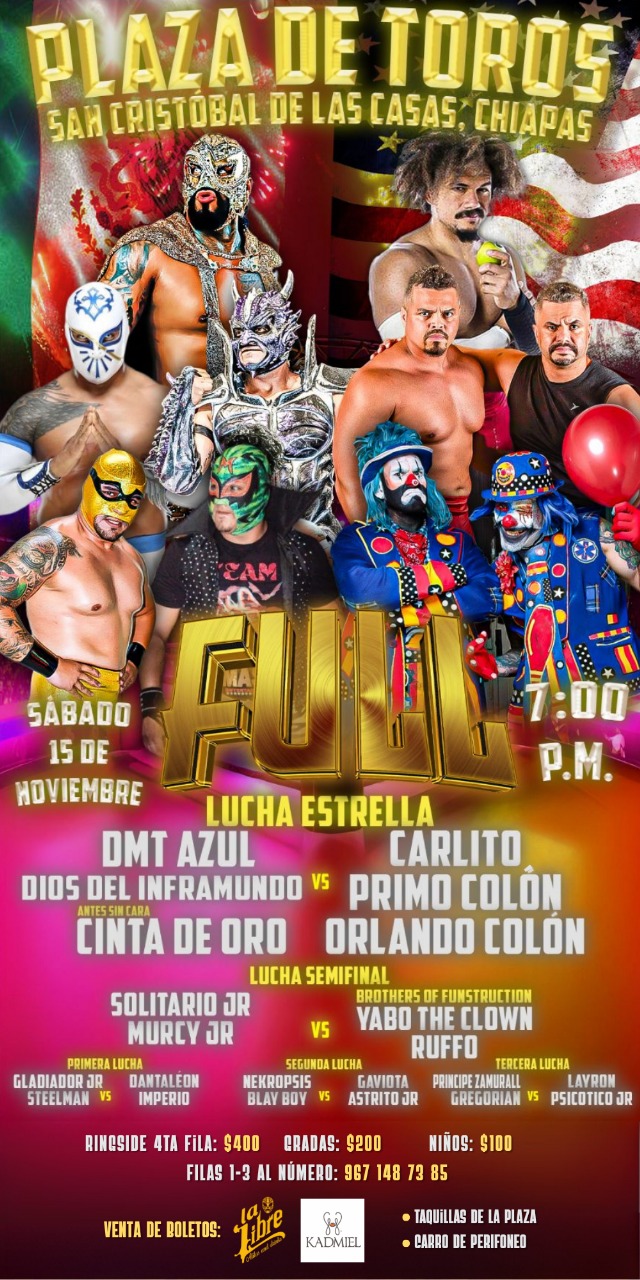 ¡LA INVASIÓN HA COMENZADO! 🔥 *FULL CHIAPAS: «LO IMPOSIBLE, LO HACE POSIBLE»* – *3 CIUDADES, 3 FECHAS, 1 SOLA MISIÓN:* Defender el orgullo mexicano contra la invasión extranjera más épica de la historia. – *COMITÁN DE DOMÍNGUEZ:* Viernes 14 de Noviembre – *SAN CRISTÓBAL DE LAS CASAS:* Sábado 15 de Noviembre – *TUXTLA GUTIÉRREZ:* Domingo 16 de Noviembre *¡NO TE PIERDAS LA OPORTUNIDAD DE SER PARTE DE ESTA GUERRA DE LEYENDAS!* 🔥👊 #FullChiapas #LuchaLibre #OrgulloMexicano #InvasiónExtranjera #GiraInternacional #EventosChiapas #LuchaLibreChiapas
